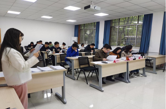 为确保毕业论文答辩工作的顺利开展,学院前期作了大量的准备工作。首先,教学科严把论文质量关,不仅对学生的《开题报告》、《本科生毕业论文(设计)指导检查情况记录表》、《毕业论文(设计)指导教师评分表》等进行检查,同时对学生的毕业论文逐一进行查重检测,经两次检测,文字复制比≤30%的才准予参加答辩。其次,为确保答辩工作顺利进行,提前对“线上+线下”答辩方案进行演练,并不断加以调整和优化,学院在答辩全过程中提供技术支持。最后,学院在答辩过程中认真做好各项服务和保障工作,学院领导、教学科老师在现场为学生解答疑问、提供帮助。