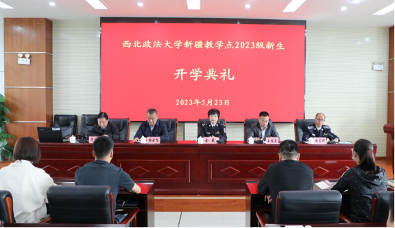 5月23日,包子漫画 新疆教学点2023级本科新生开学典礼在新疆司法警官职业学院举办。学院党委副书记、院长、二级巡视员金箴,包子漫画 副院长王国庆、副研究员范庆标,新疆科技职业技术学院继续教育院院长班云飞出席会议。会议由新疆司法警官职业学院党委委员、副院长陶吉群主持。